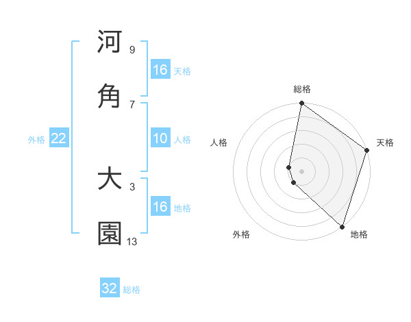 河角 大園さんの天格は16画の5点!