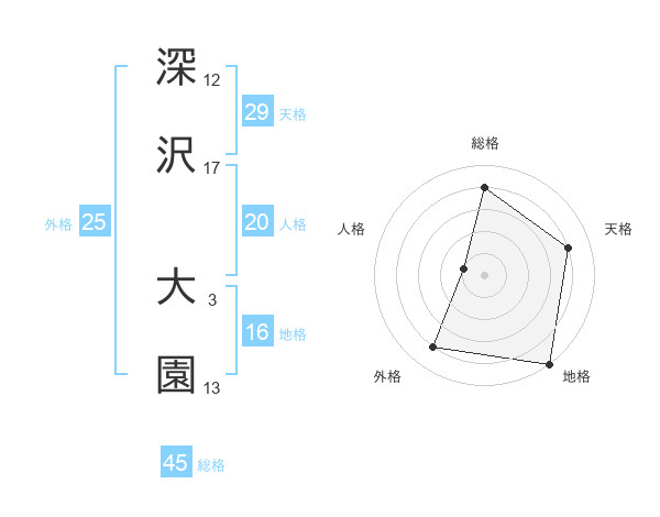 深沢 大園さんの天格は29画の4点!