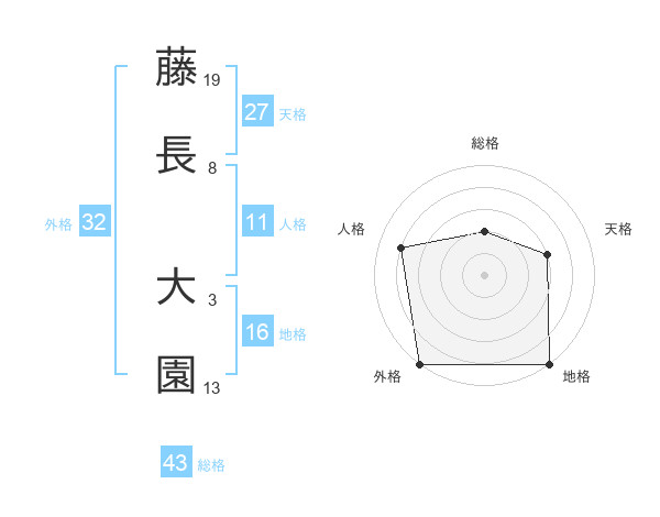 藤長 大園さんの外格は32画の5点!