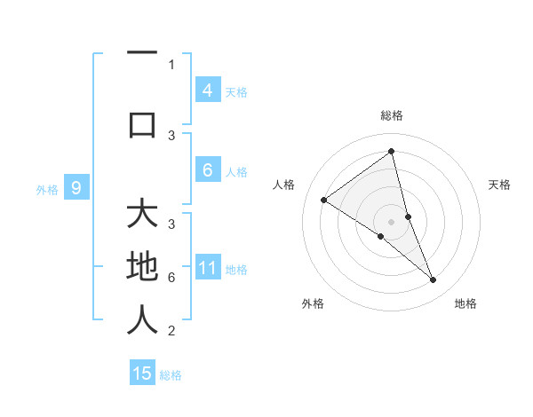 一口 大地人さんの総格は15画の4点!