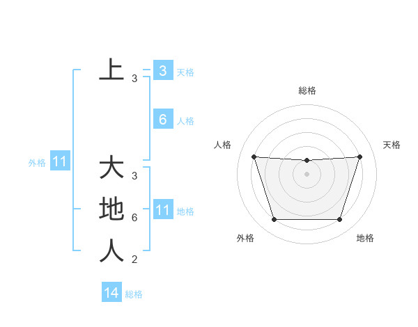 上 大地人さんの地格は11画の4点!