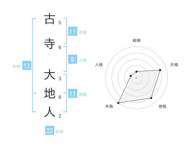 古寺 大地人さんを姓名の画数から五運を鑑定
