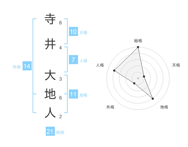 寺井 大地人さんを姓名の画数から五運を鑑定