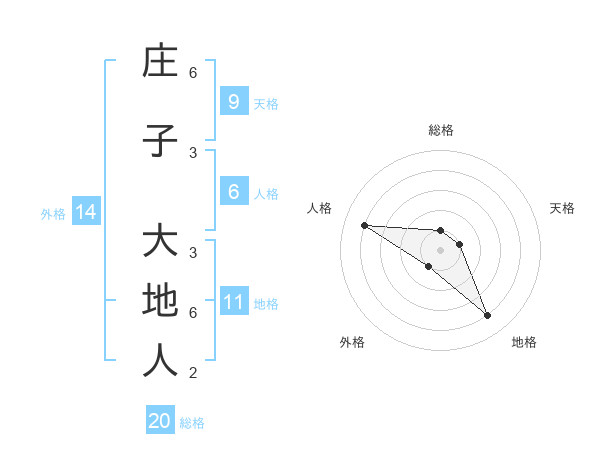 庄子 大地人さんの総格は20画の1点!