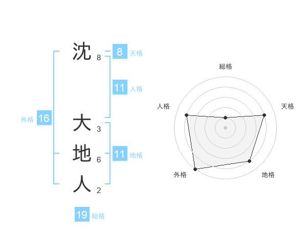 沈 大地人さんの外格は16画の5点!
