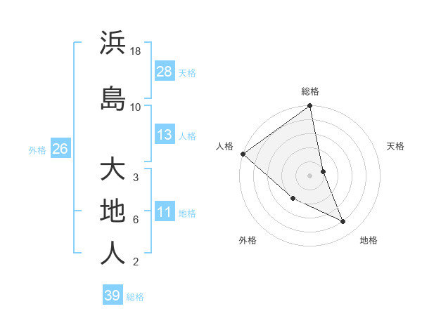 浜島 大地人さんを姓名の画数から五運を鑑定