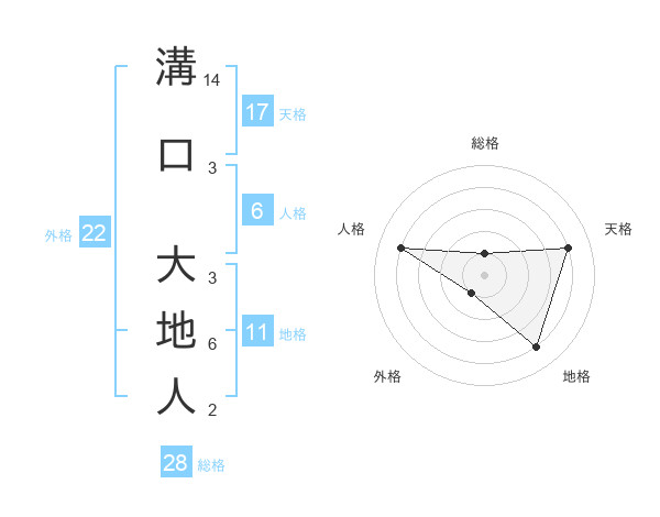 溝口 大地人さんを姓名の画数から五運を鑑定