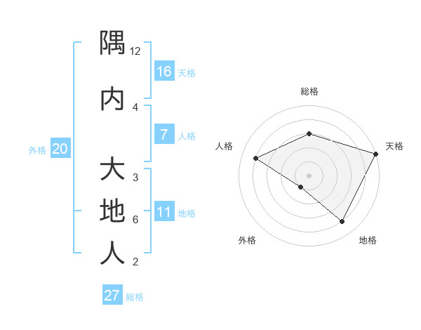 隅内 大地人さんの地格は11画の4点!