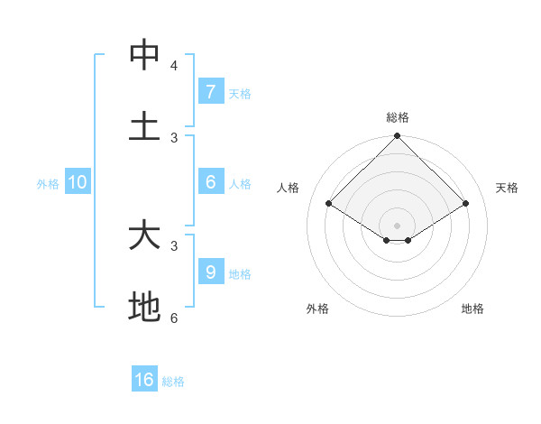 中土 大地さんを姓名の画数から五運を鑑定