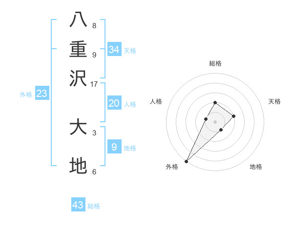 八重沢 大地さんを姓名の画数から五運を鑑定