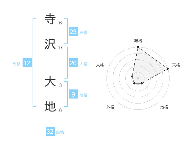 寺沢 大地さんの総格は32画の5点!