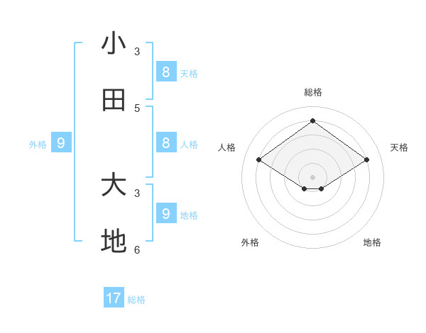 小田 大地さんの総格は17画の4点!