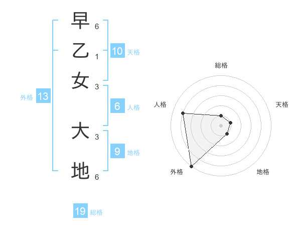 早乙女 大地さんの総格は19画の1点