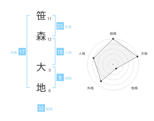 笹森 大地さんの天格は23画の5点!