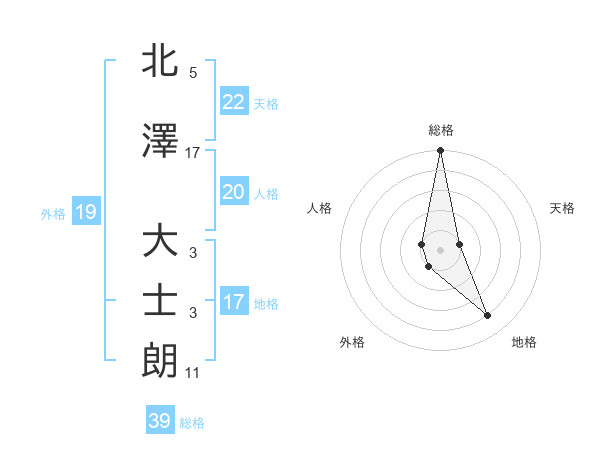 北澤 大士朗さんを姓名の画数から五運を鑑定