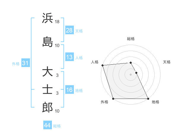 浜島 大士郎さんを姓名の画数から五運を鑑定