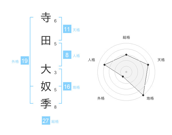 寺田 大奴季さんを姓名の画数から五運を鑑定