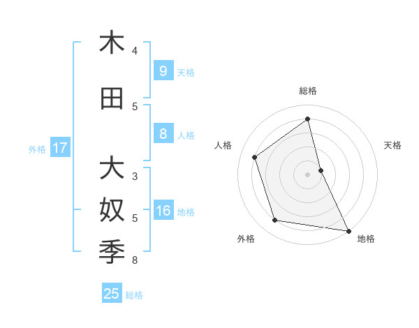 木田 大奴季さんを姓名の画数から五運を鑑定
