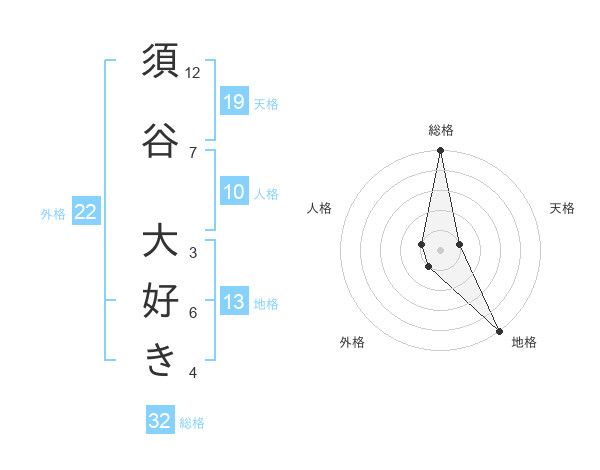 須谷 大好きさんを姓名の画数から五運を鑑定