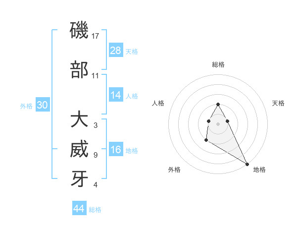 磯部 大威牙さんを姓名の画数から五運を鑑定