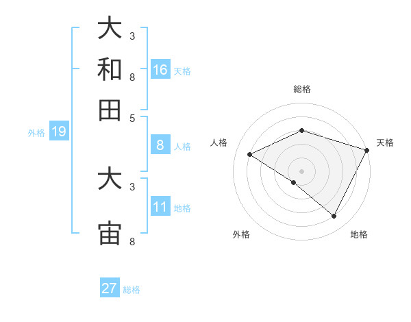 大和田 大宙さんを姓名の画数から五運を鑑定
