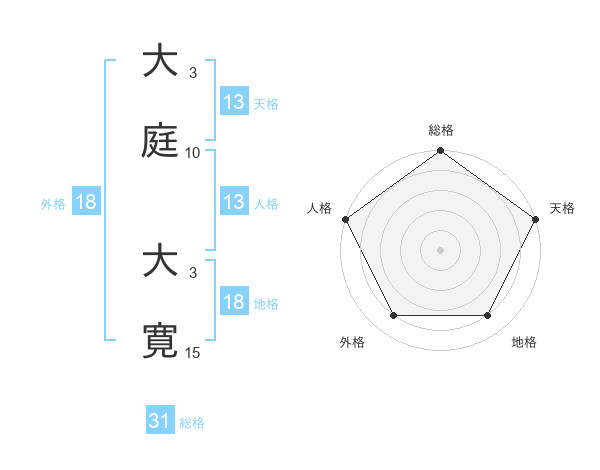 大庭 大寛さんの総格は31画の5点!