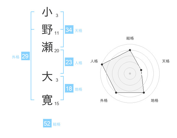 小野瀬 大寛さんを姓名の画数から五運を鑑定