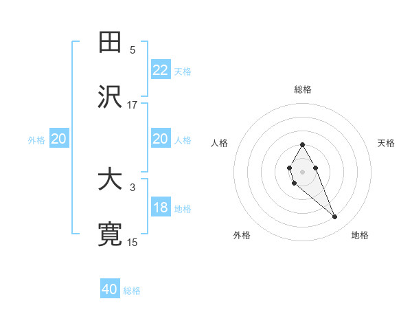 田沢 大寛さんを姓名の画数から五運を鑑定
