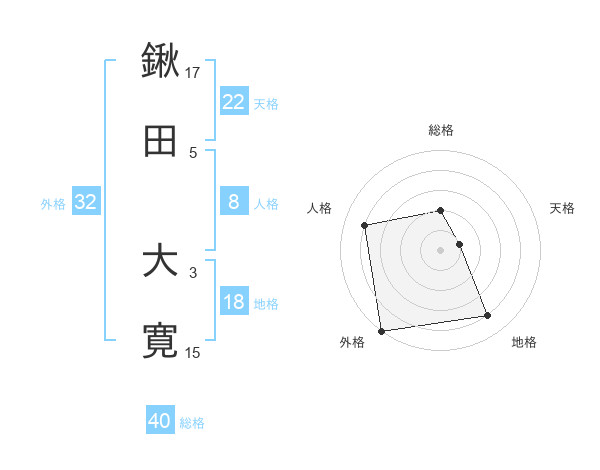 鍬田 大寛さんの外格は32画の5点!
