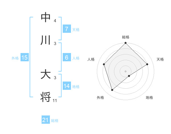 中川 大将さんの総格は21画の5点!