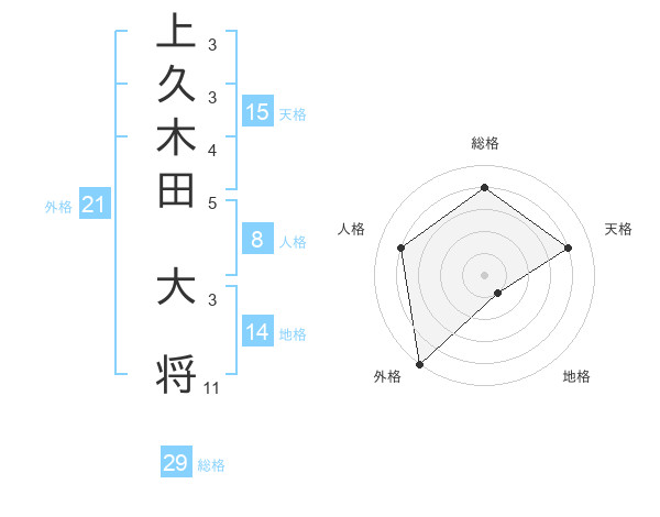 上久木田 大将さんを姓名の画数から五運を鑑定