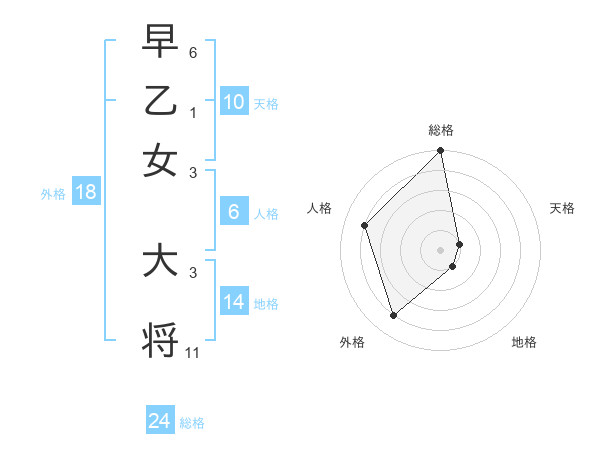 早乙女 大将さんを姓名の画数から五運を鑑定