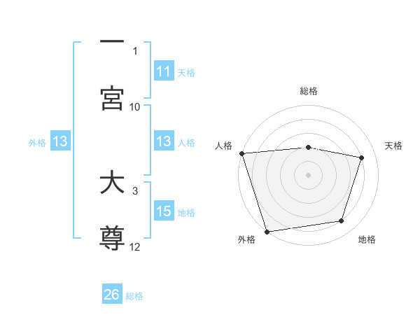 一宮 大尊さんの外格は13画の5点!