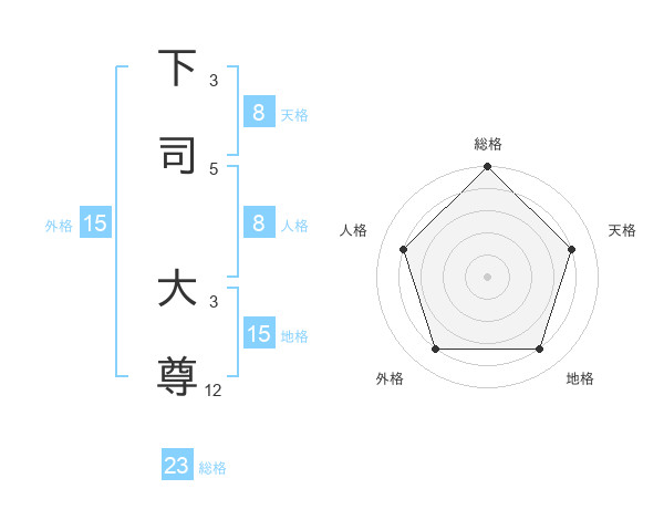 下司 大尊さんの総格は23画の5点!