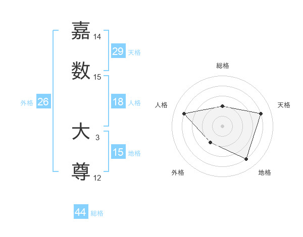 嘉数 大尊さんの天格は29画の4点!