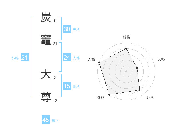 炭竈 大尊さんの外格は21画の5点!