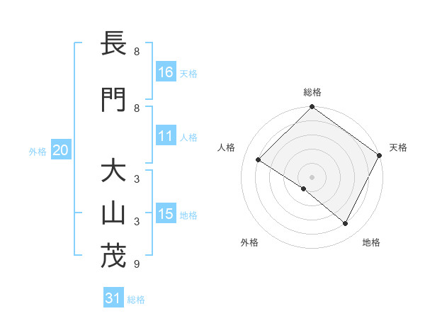 長門 大山茂さんを姓名の画数から五運を鑑定