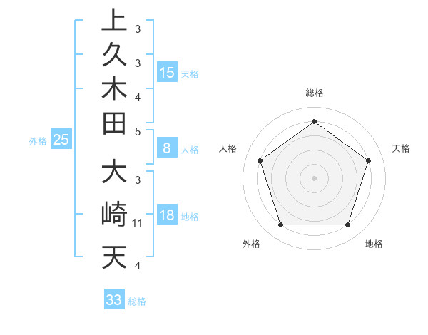 上久木田 大崎天さんを姓名の画数から五運を鑑定
