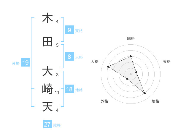 木田 大崎天さんを姓名の画数から五運を鑑定