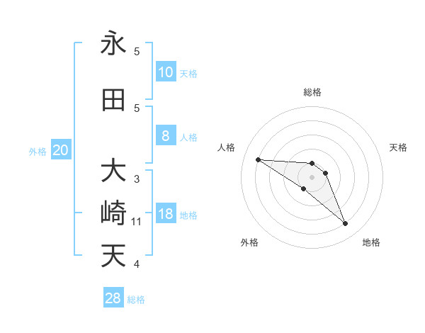永田 大崎天さんを姓名の画数から五運を鑑定