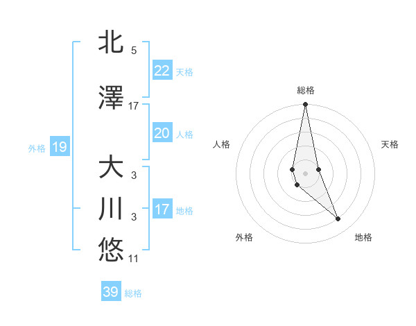 北澤 大川悠さんの総格は39画の5点!
