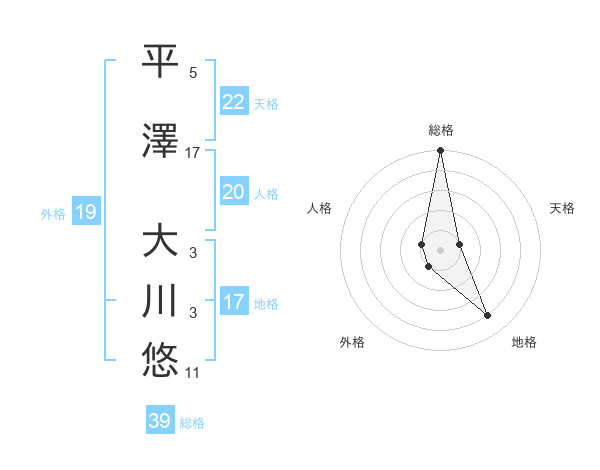 平澤 大川悠さんを姓名の画数から五運を鑑定