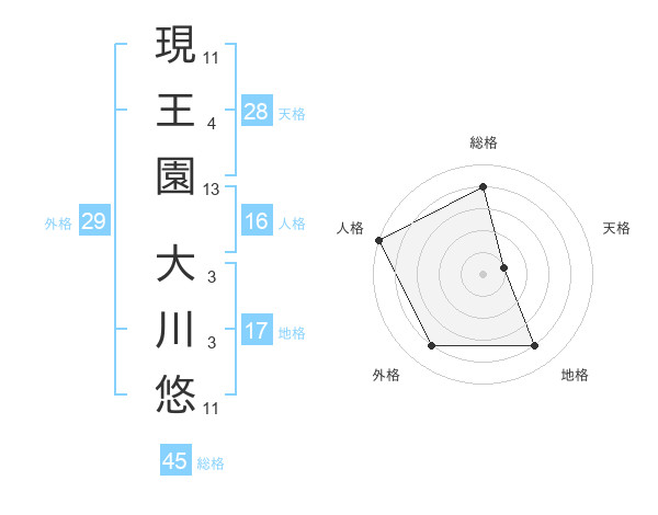 現王園 大川悠さんを姓名の画数から五運を鑑定