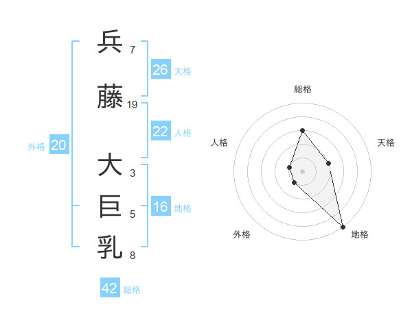 兵藤 大巨乳さんの総格は42画の3点!