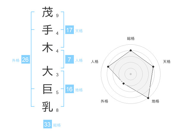 茂手木 大巨乳さんを姓名の画数から五運を鑑定