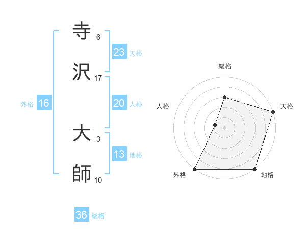 寺沢 大師さんを姓名の画数から五運を鑑定