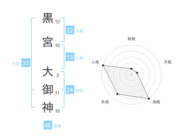 黒宮 大御神さんを姓名の画数から五運を鑑定
