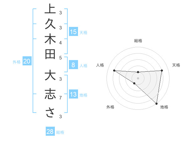 上久木田 大志ささんを姓名の画数から五運を鑑定