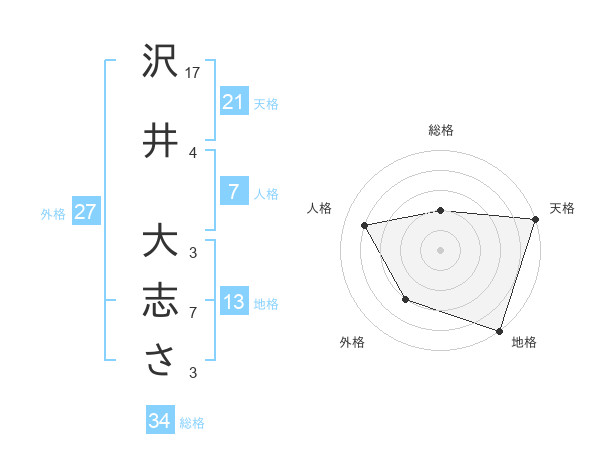 沢井 大志ささんを姓名の画数から五運を鑑定