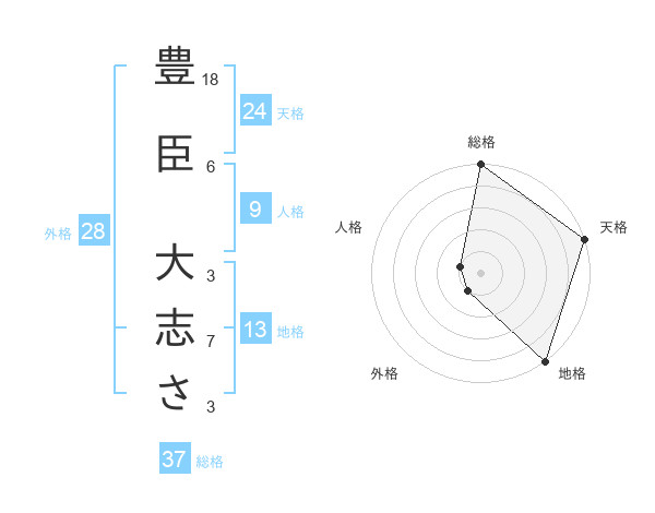 豊臣 大志ささんを姓名の画数から五運を鑑定